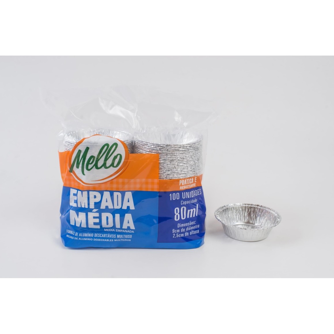 A FORMA DE ALUMÍNIO "EMPADA MÉDIA" 80 ML COM 100 UNIDADES MELLO É A ESCOLHA IDEAL PARA QUEM DESEJA PRATICIDADE E ECONOMIA AO PREPARAR EMPADAS E TORTAS. COM 100 UNIDADES, ESSA EMBALAGEM OFERECE LONGO RENDIMENTO E EFICIÊNCIA, PERFEITA PARA USO DOMÉSTICO OU EM ESTABELECIMENTOS COMERCIAIS, COMO RESTAURANTES E LANCHONETES.